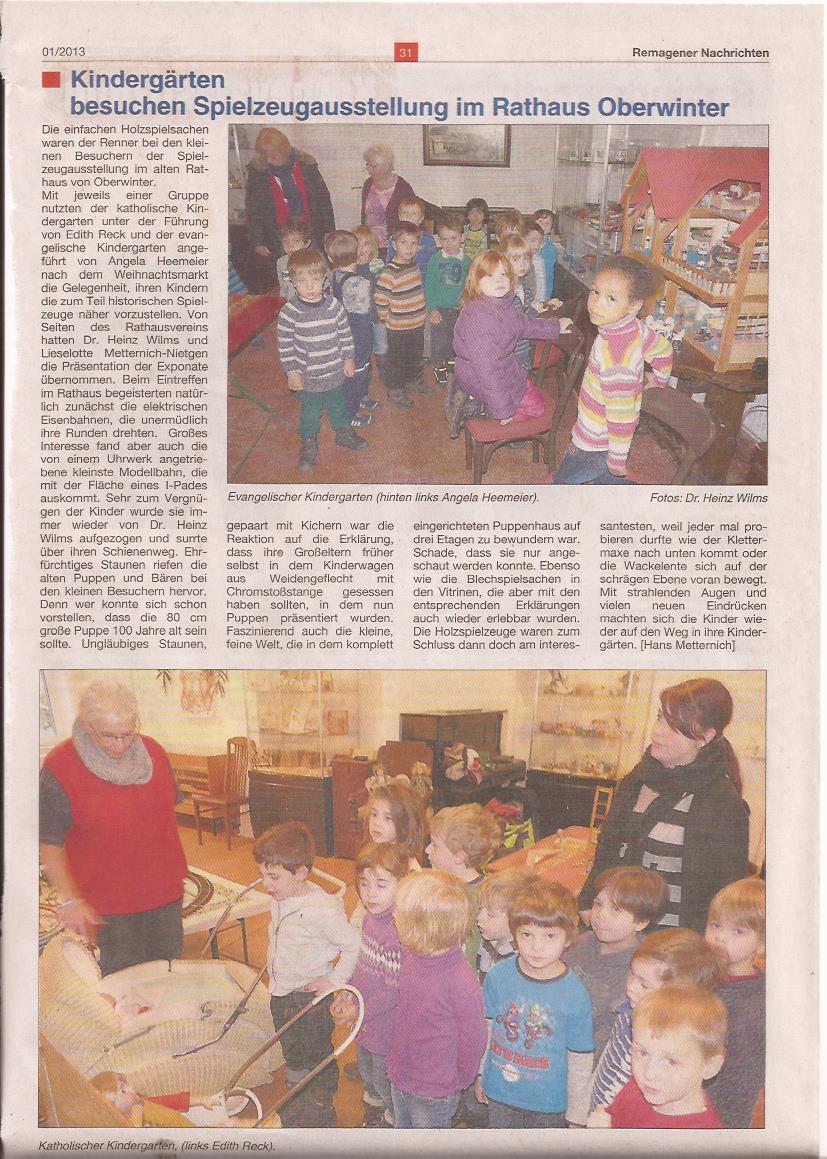 Kindergärten besuchen Spielzeugausstellung im Rathaus Oberwinter
