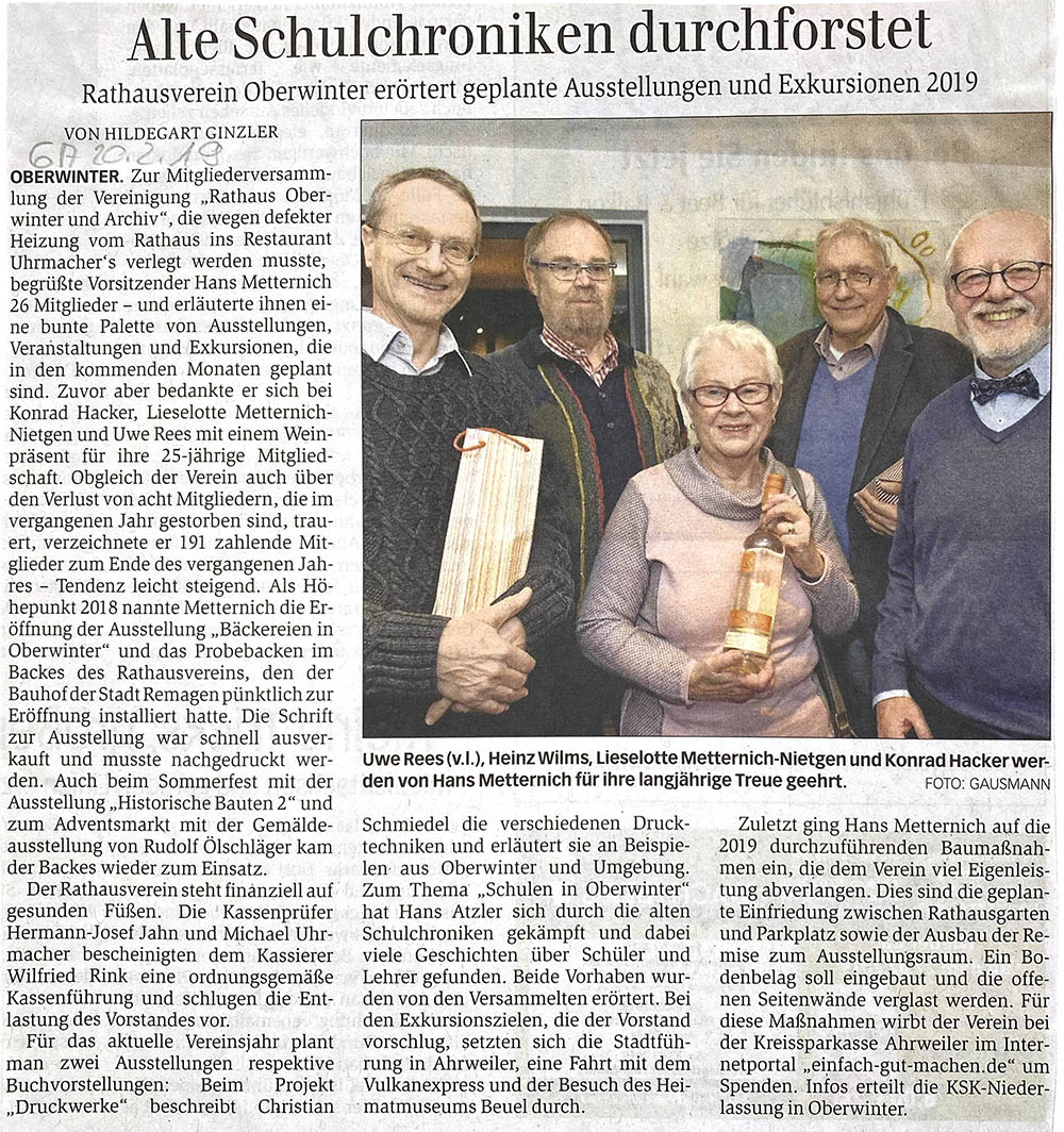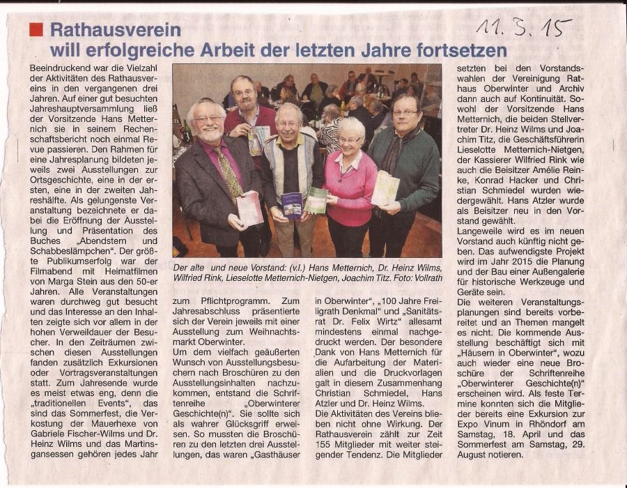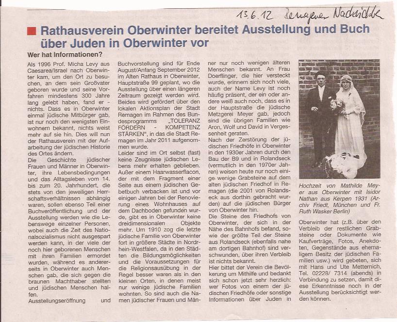 Rathausverein bereitet Ausstellung und Buch über Juden in Oberwinter vor