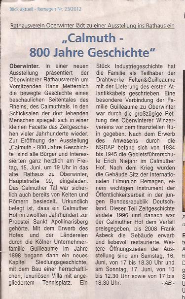 Calmuth-Ausstellung im Rathaus Oberwinter