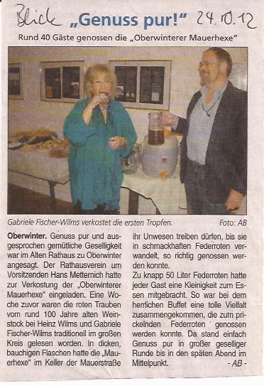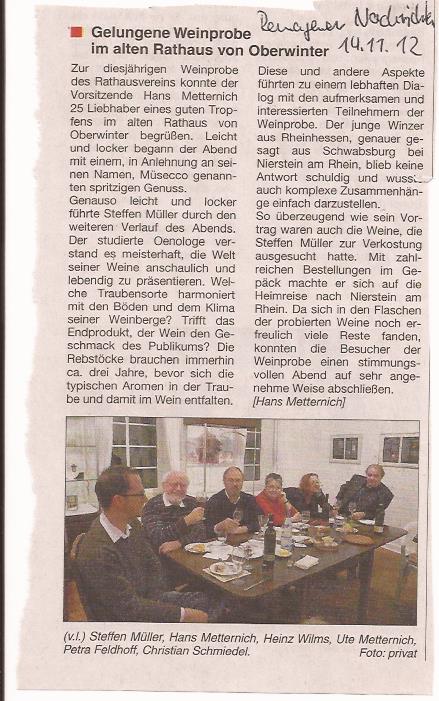 Gelungene Weinprobe im alten Rathaus von Oberwinter