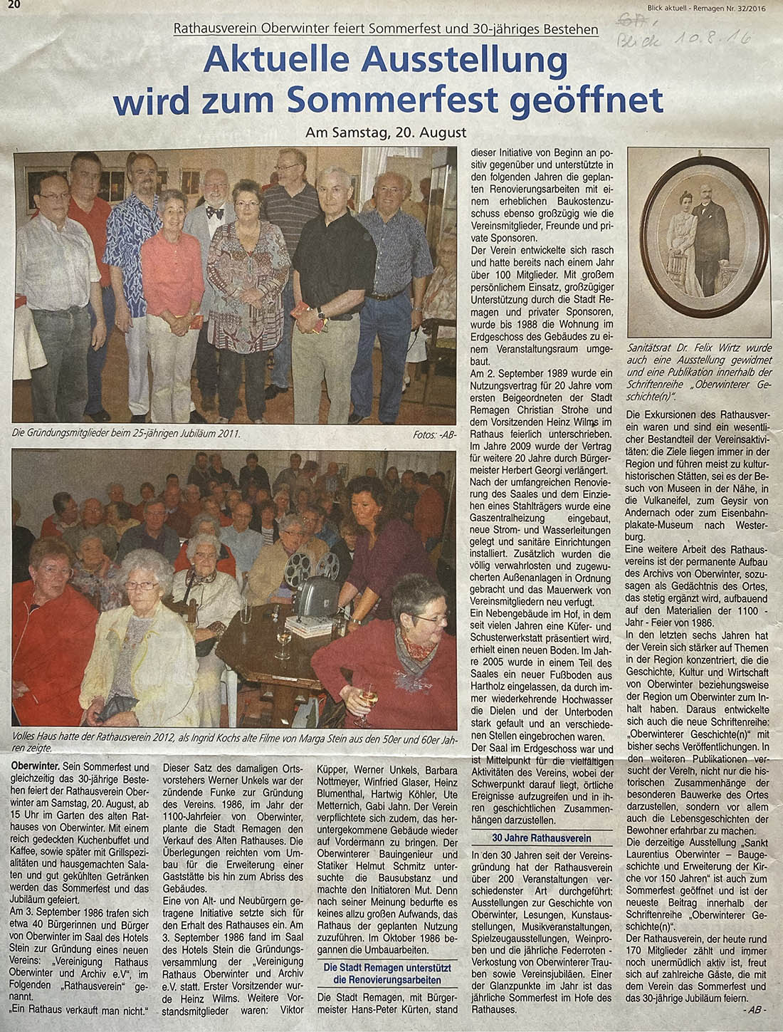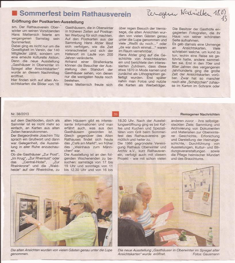 Sommerfest: Ausstellung "Gasthäuser in Oberwinter"