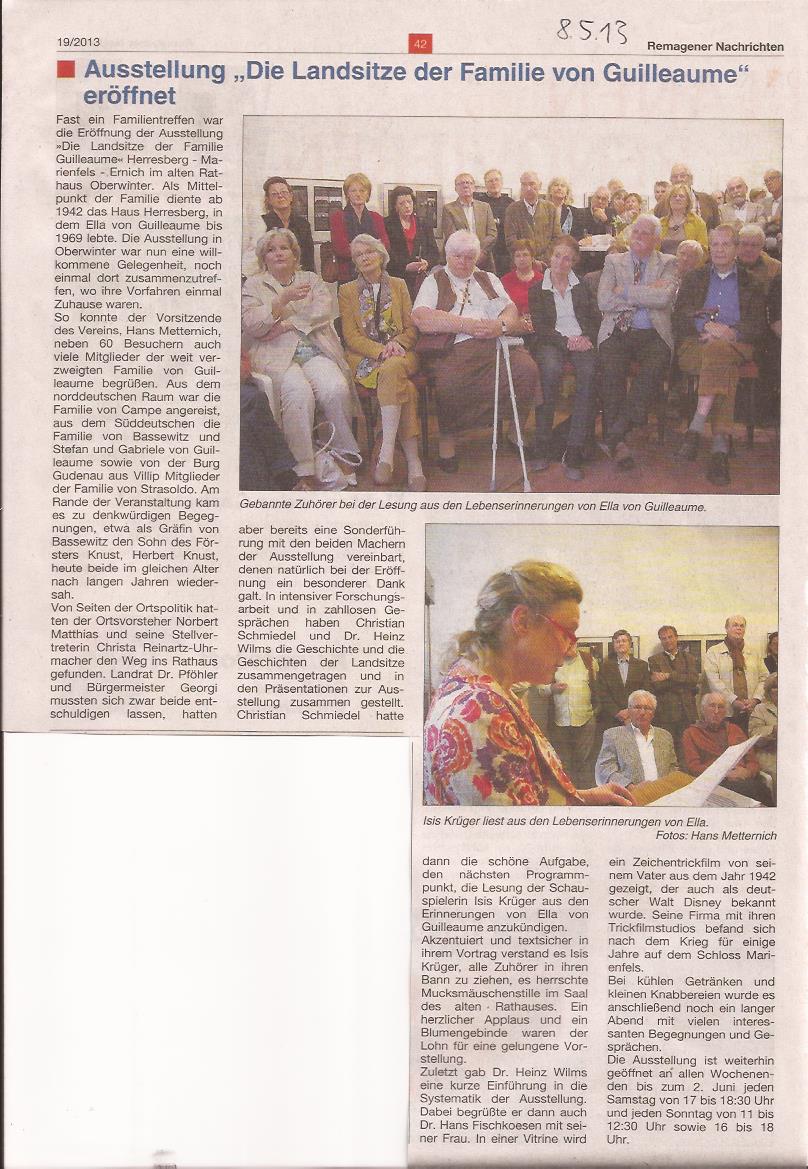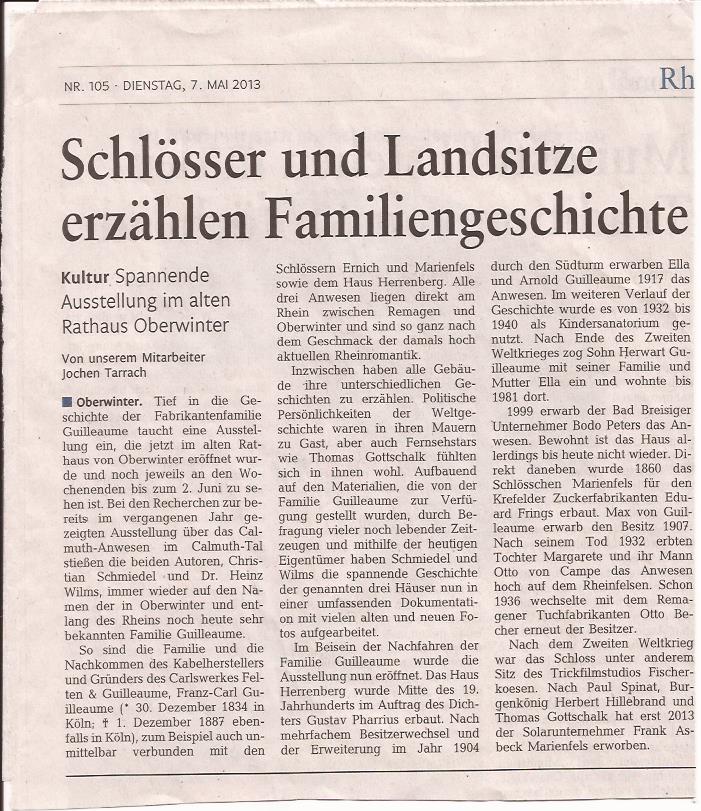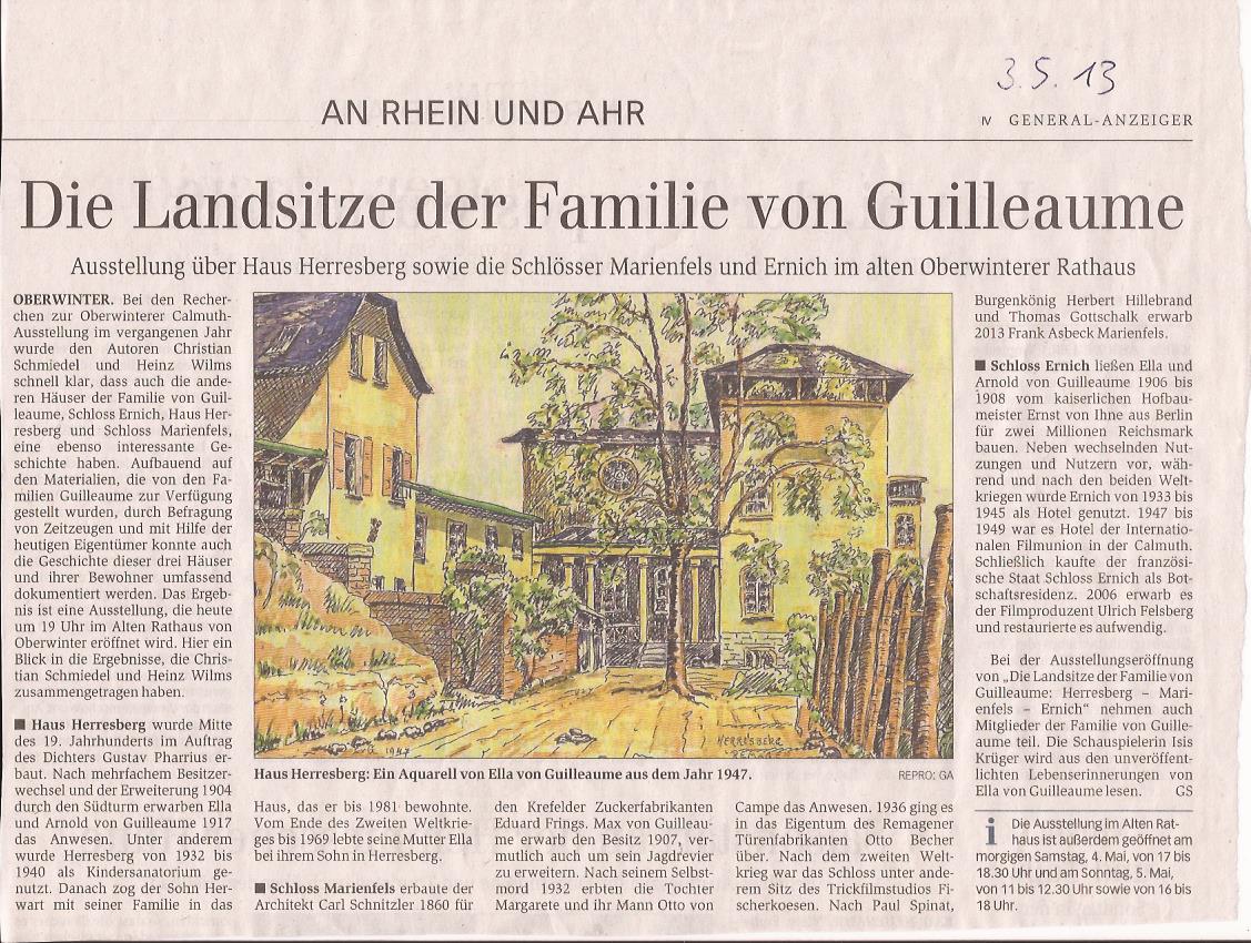 Ausstellung "Die Landsitze der Famillie von Guilleaume" eröffnet