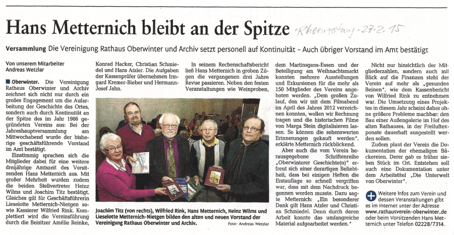 Rathausverein will erfolgreiche Arbeit der letzten Jahre fortsetzen