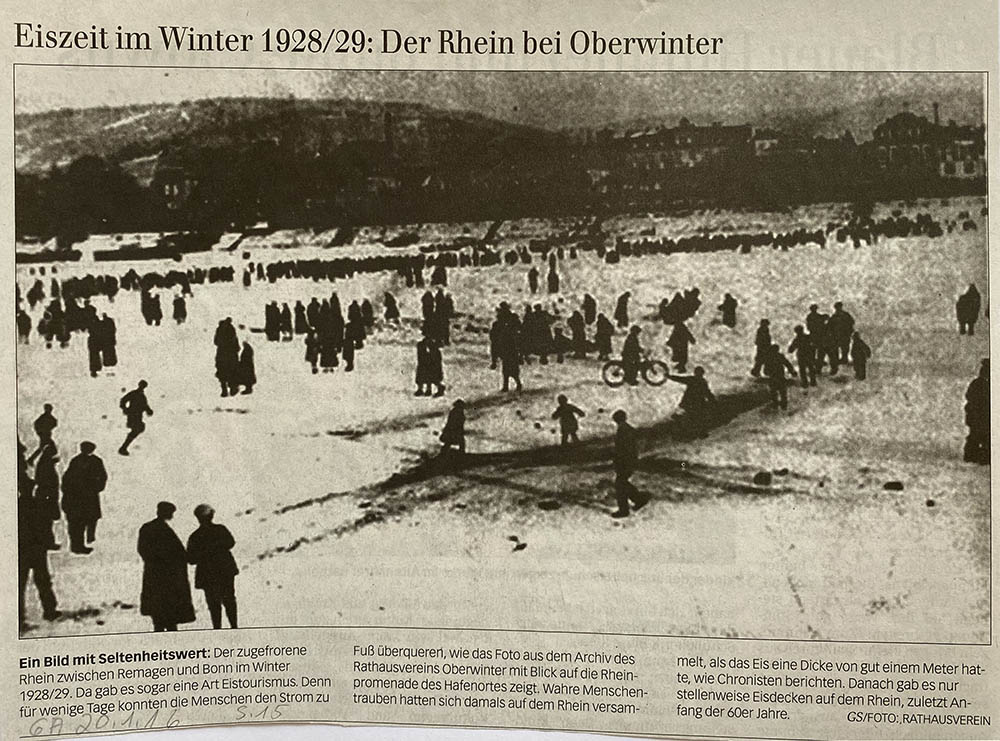Eiszeit im Winter 28/29: der Rhein bei Oberwinter