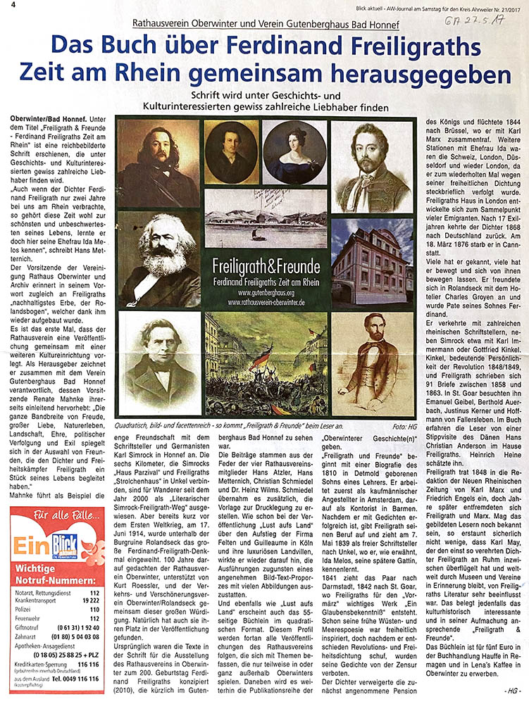 Das Buch über Ferdinand Freiligraths Zeit am Rhein gemeinsam herausgegeben