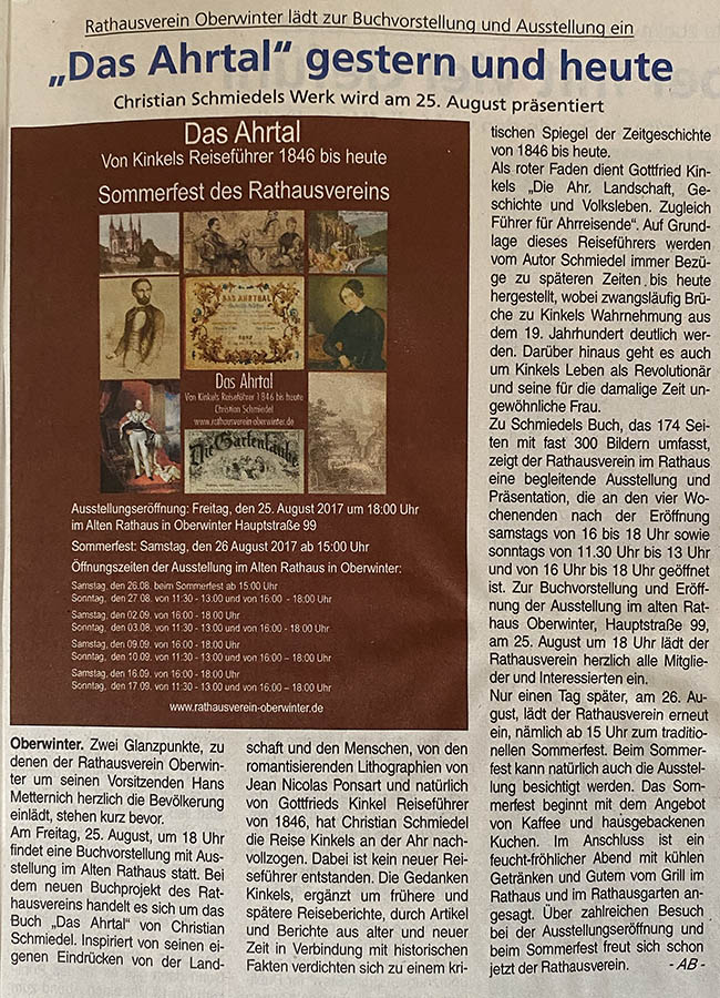 "Das Ahrtal - von Kinkels Reiseführer 1846 bis heute"