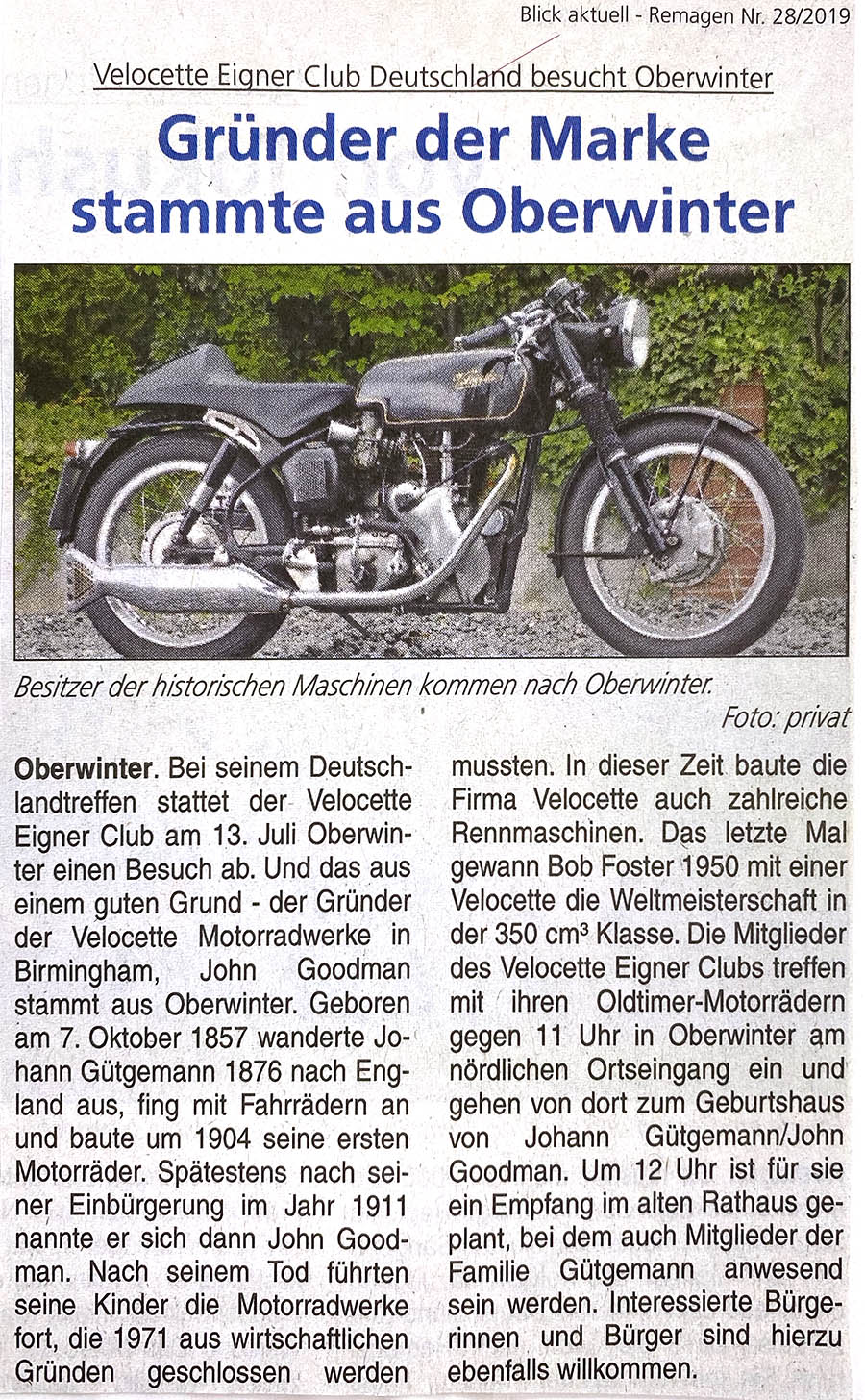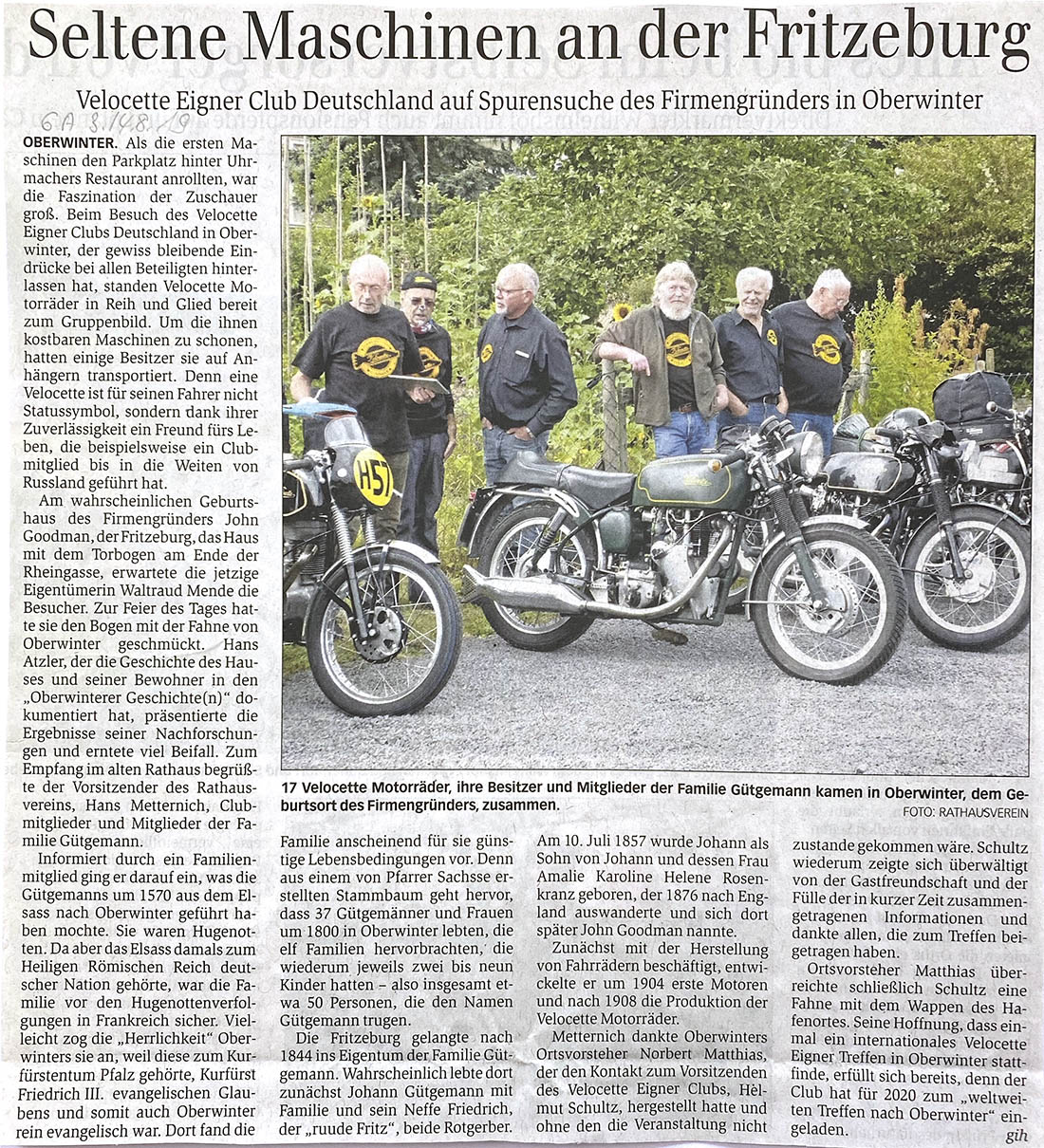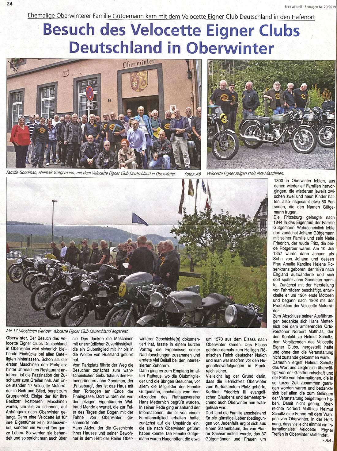 Besuch des Velocette Eigner Clubs Deutschland in Oberwinter