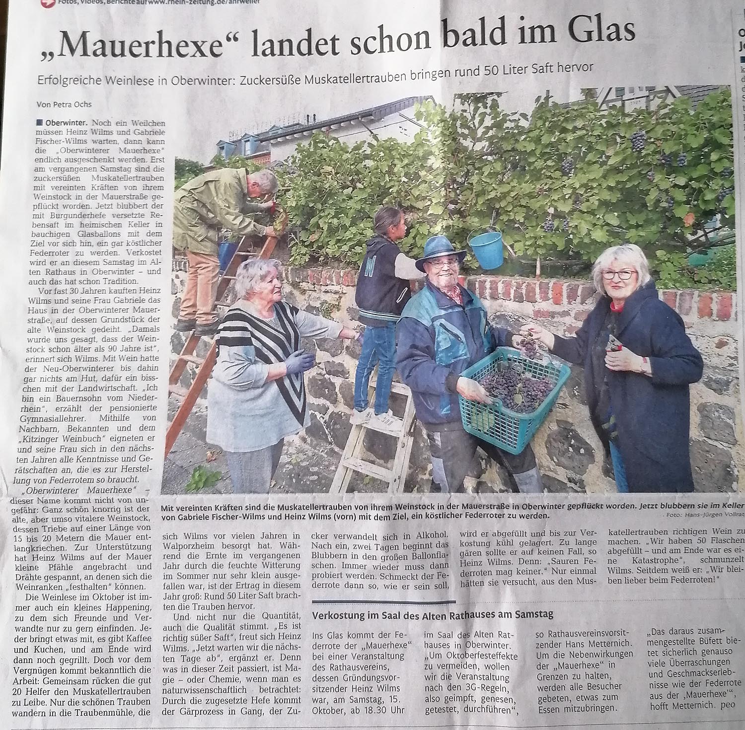 Rathausverein kostst die "Oberwinterer Mauerhexe"
