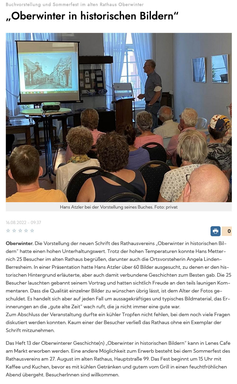 Kurzweilige Buchvorstellung im alten Rathaus Oberwinter